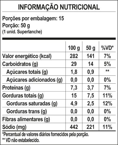 Fécula de mandioca, leite pasteurizado integral, ovos, queijo parmesão, óleo de girassol e sal.